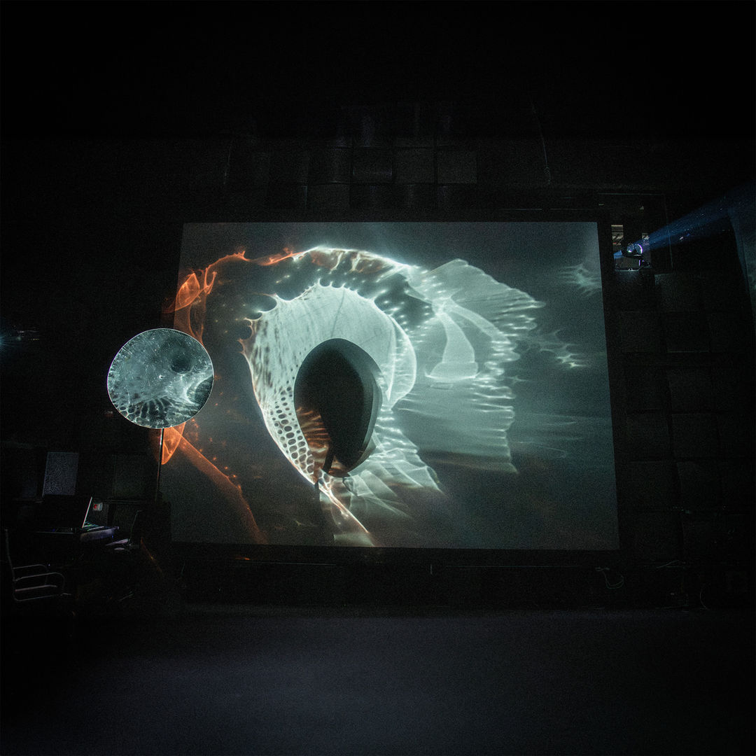 Light shines onto stainless steel discs and reflects dynamic light drawings that respond to sound, creating a sense that both the sound and the light are alive. Data engraved onto the reflector by a robotic arm is derived from the footprint of the cistern along with the way that sound reverberates off the cistern itself. Once illuminated, the information is reflected and transposed into light drawings. Multiple reflections from one light source create a sense of reverberation echoed in both light and sound.